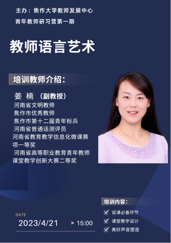 为深入贯彻落实中共中央、省教育厅关于教师队伍建设的重要决策部署和教育大会精神,进一步提升青年教师教育教学能力,引导教师钻研教学基本功,守好教学主阵地,努力使青年教师尽快成长为教学上本领过硬、学生中口碑良好的“四有”好老师。学校教师发展中心近期开展青年教师研习营第一期活动,现将相关研习活动事宜通知如下:
