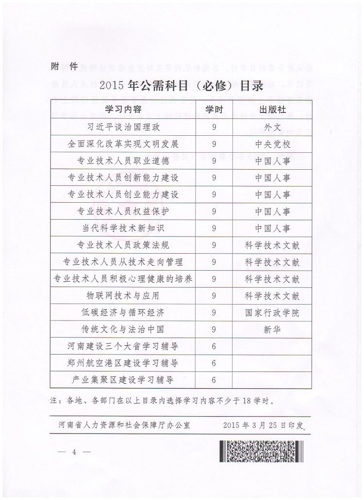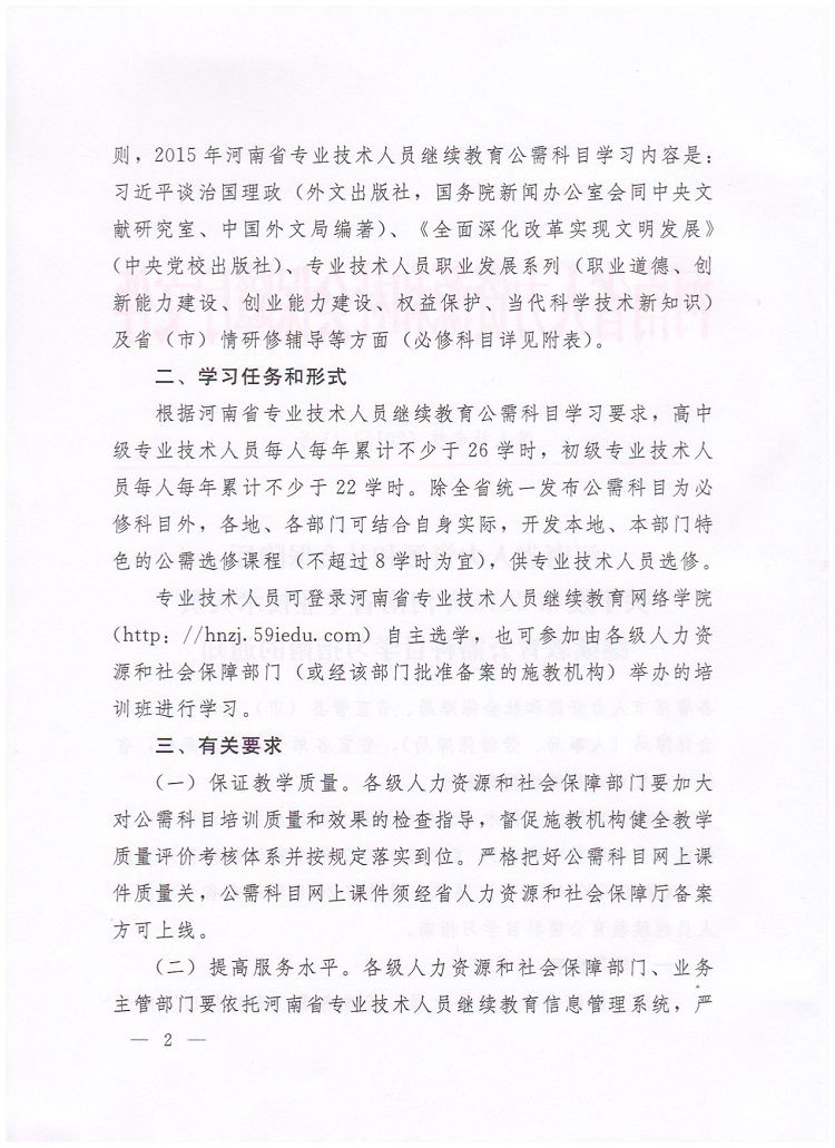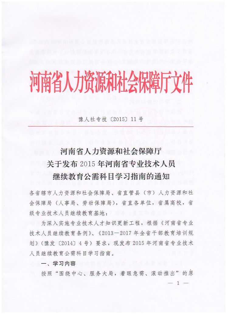 关于发布2015年河南省专业技术人员继续教育公需科目学习指南的通知